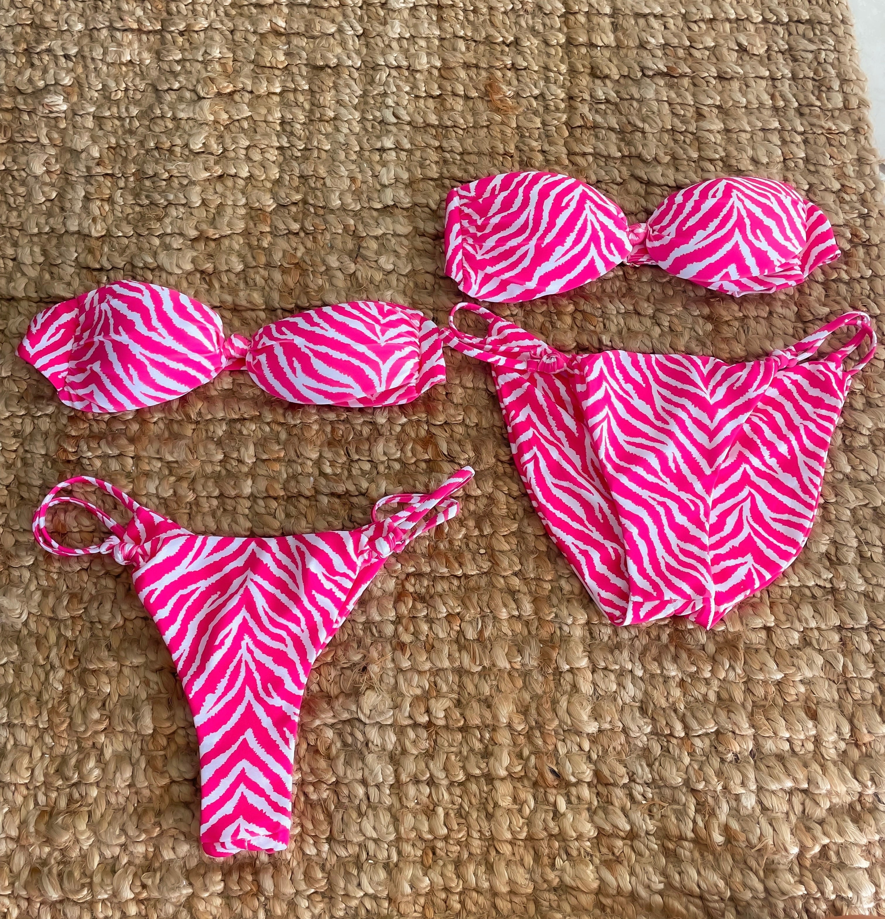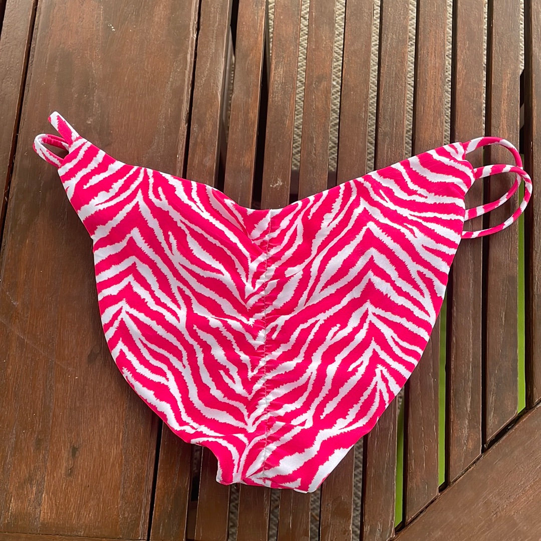 Knotty Zebra Scrunch Full Bikini Bottoms- HOT PINK
