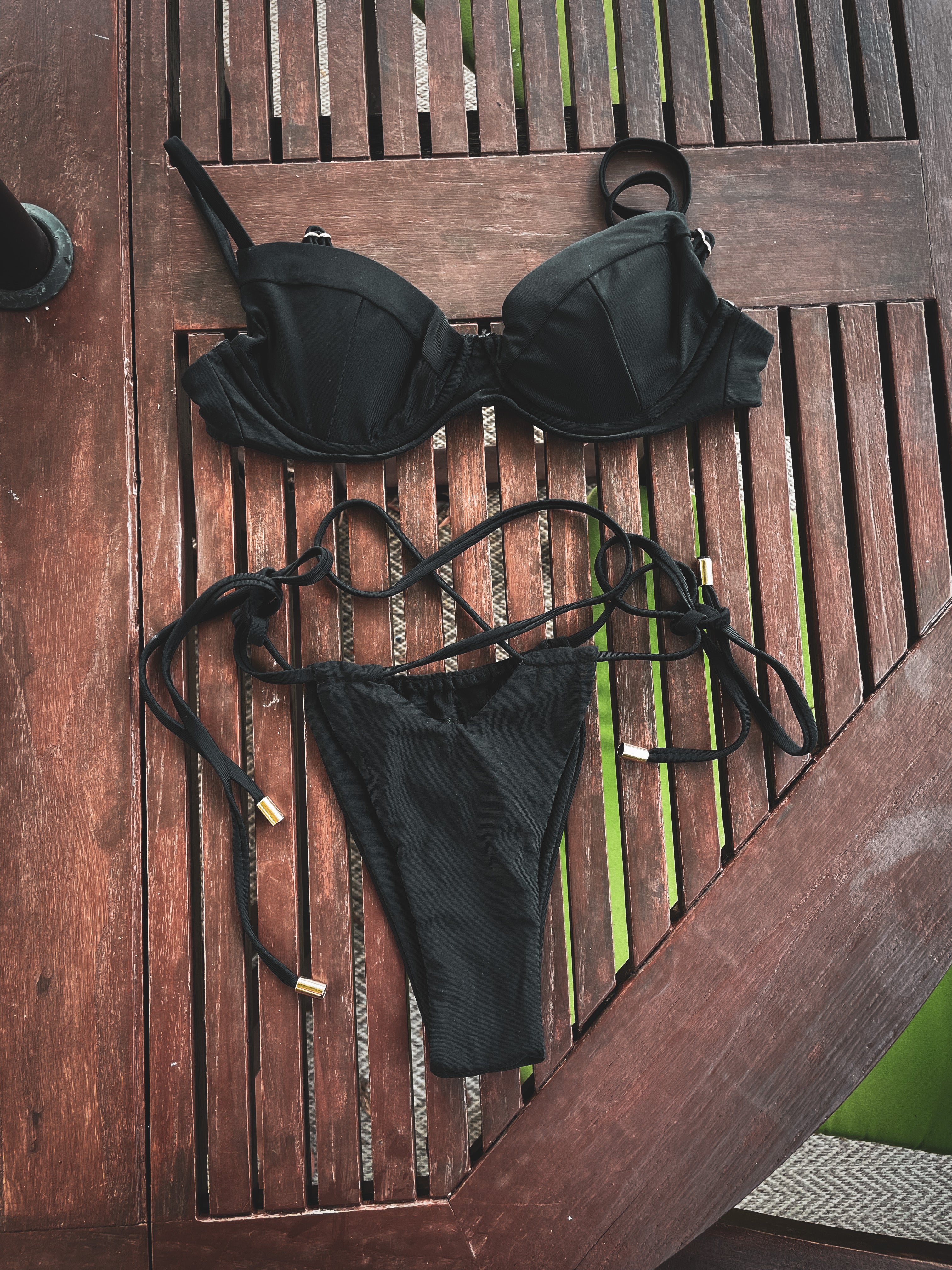 This Bustier Underwire Bikini Top in Satin Black will make sure you're looking ahh-mazing! With its comfortable silky material and push up underwire, you'll be sure to slay all summer long! Get ready to make a splash! Has removable padding and well supported adjustable straps.