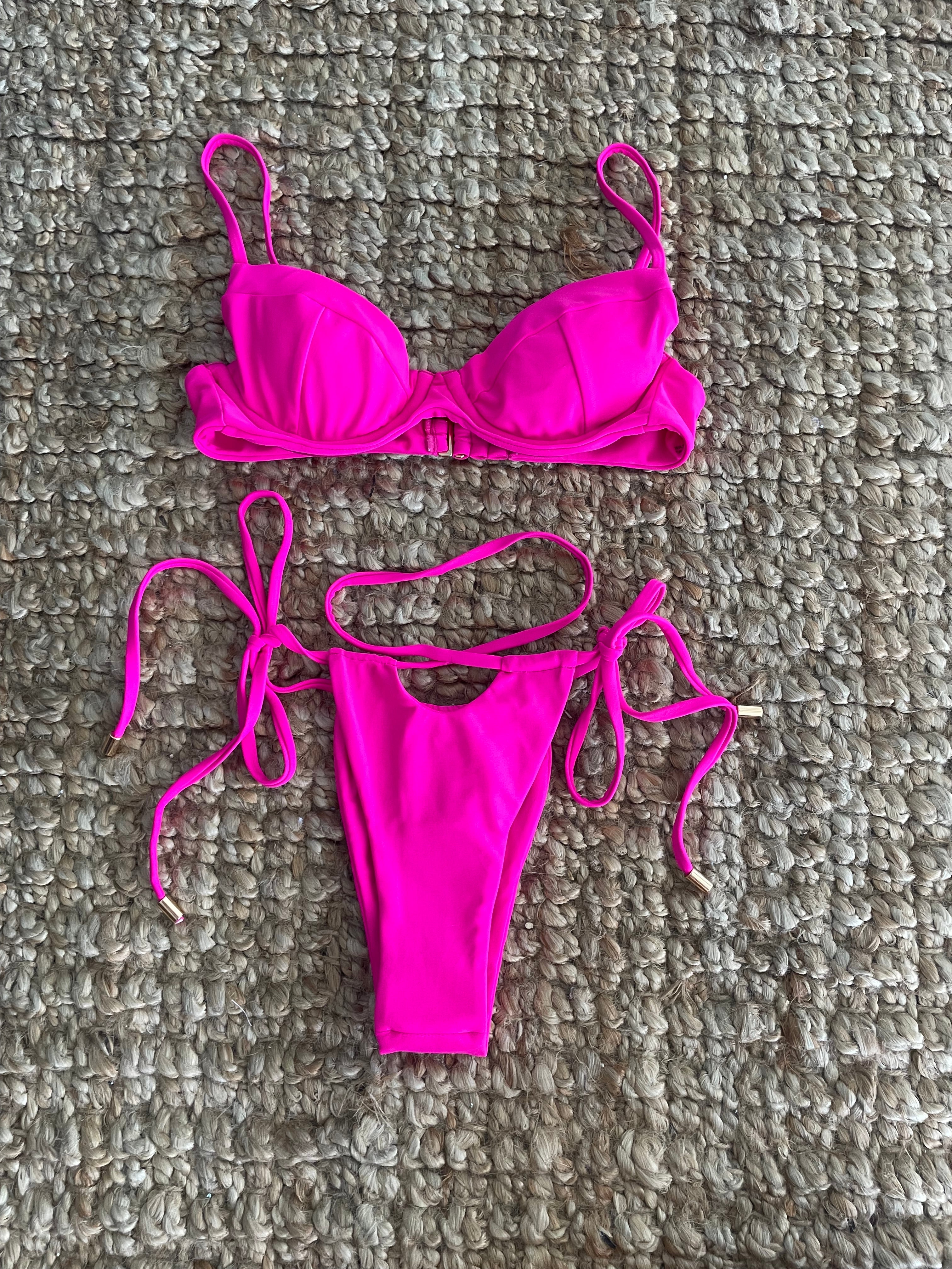 This Bustier Underwire Bikini Top in hot pink will make sure you're looking ahh-mazing! With its comfortable silky material and push up underwire, you'll be sure to slay all summer long! Get ready to make a splash! Has removable padding and well supported adjustable straps.